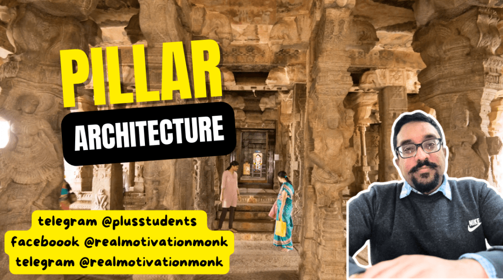 - The earliest example of pillar architecture comes from the Harappan civilization. Two kinds of pillars having found at the Harappan settlement. One is a stone pillar having measurement that was found at Dholavira (Gujarat). This pillar is probably used to check the water level in the reservoir.